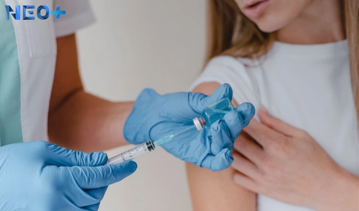 Врач вводит лекарство в шприц перед уколом пациентке
